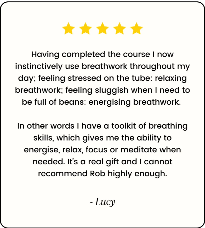 I'm Rob Rea, and truthfully, I'm selfish. This course? It's all about me. I know the perks of efficient breathing—how to shift from sluggish to energised, how to calm a busy mind for better sleep.
